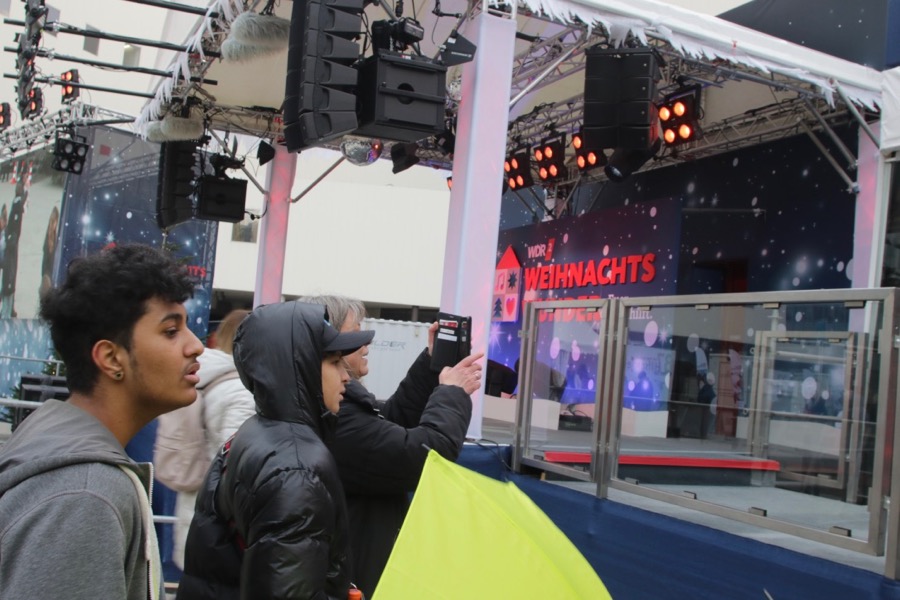 Am Montag, 18.12.2023 fuhr eine Delegation aus Schülern aller Klassen nach Düsseldorf zum WDR, um für die WDR2-Aktion „Weihnachtswunder“ Einnahmen aus dem Weihnachtsbasar zu spenden und den Musikwunsch „Last Christmas“ von George Michael abzugeben.