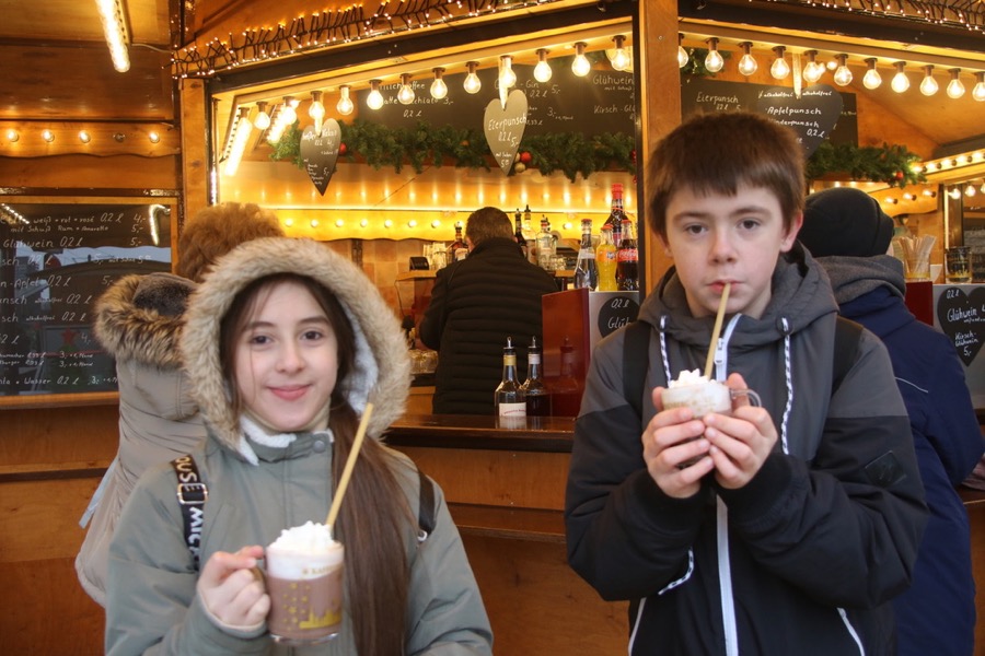 Nach der Spendenübergabe gab es noch einen Bummel durch die weihnachtliche Fußgängerzone in Düsseldorf und zur Belohnung für jeden noch einen warmen Kakao mit Sahne nachdem die SchülerInnen geduldig bei winterlichen Temperaturen in der Spendenreihe standen bis sie schließlich auch an der Reihe waren.